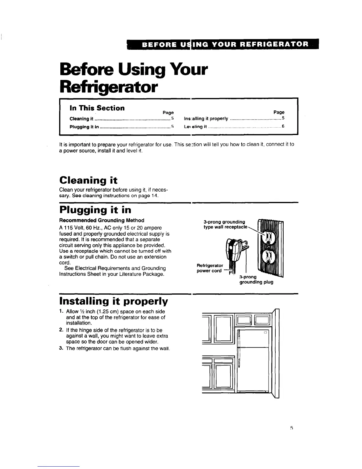 It is important to prepare your refrigerator for use. This section will tell you how to clean it, connect it to