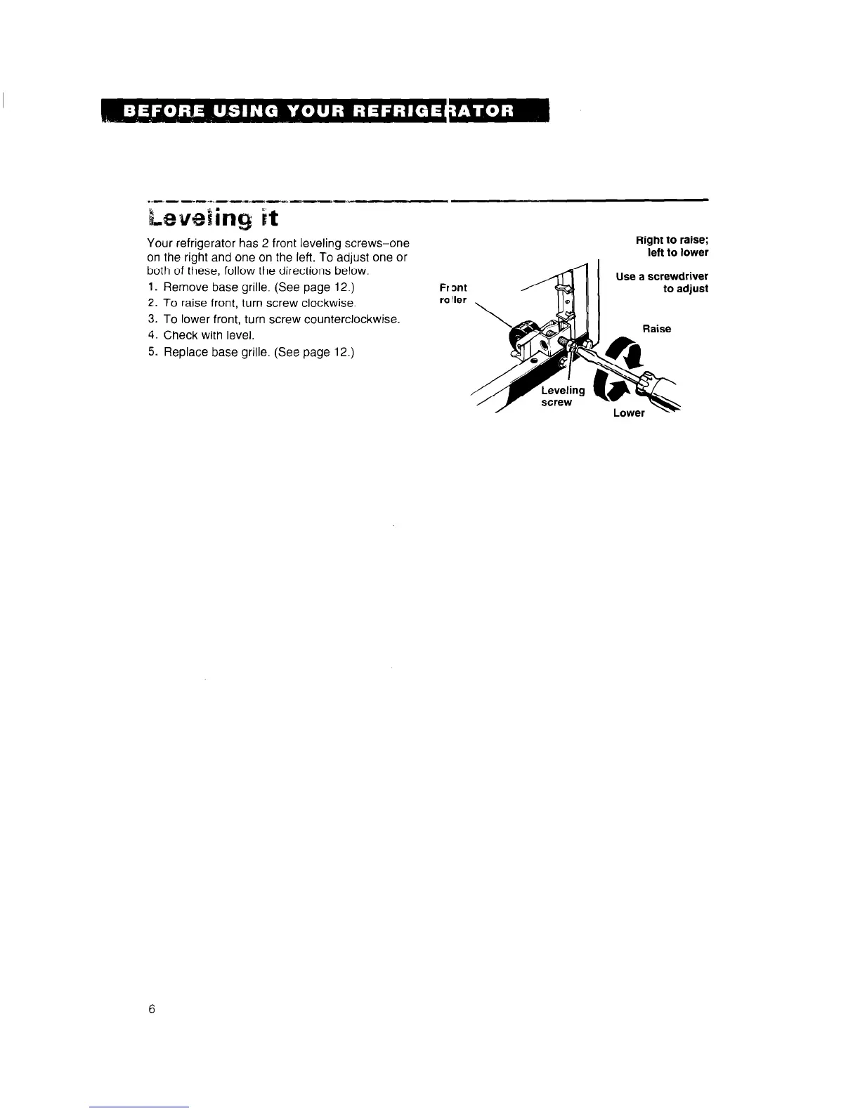 Your refrigerator has 2 front leveling screws-one
