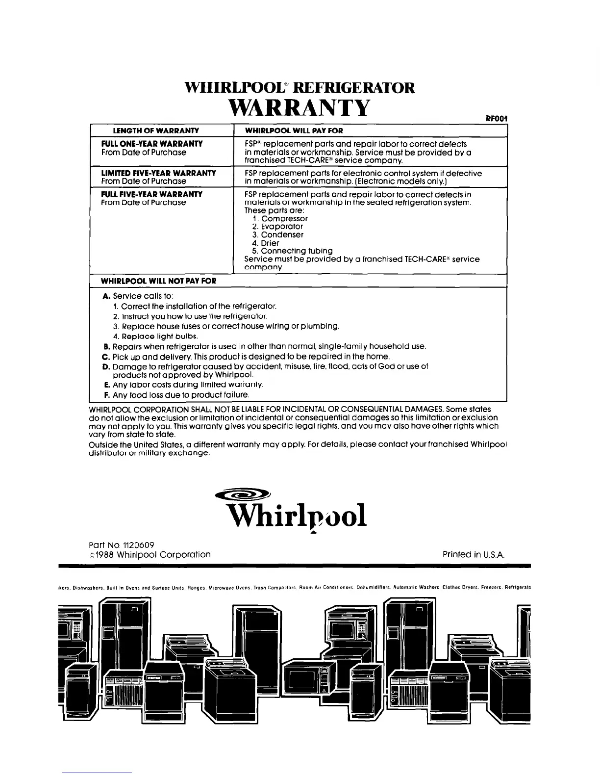 WHIRLPOOL WILL NOT PAY FOR