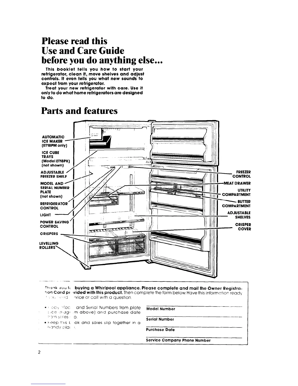 buying a Whirlpool appliance. Please complete and mail the Owner Registra-