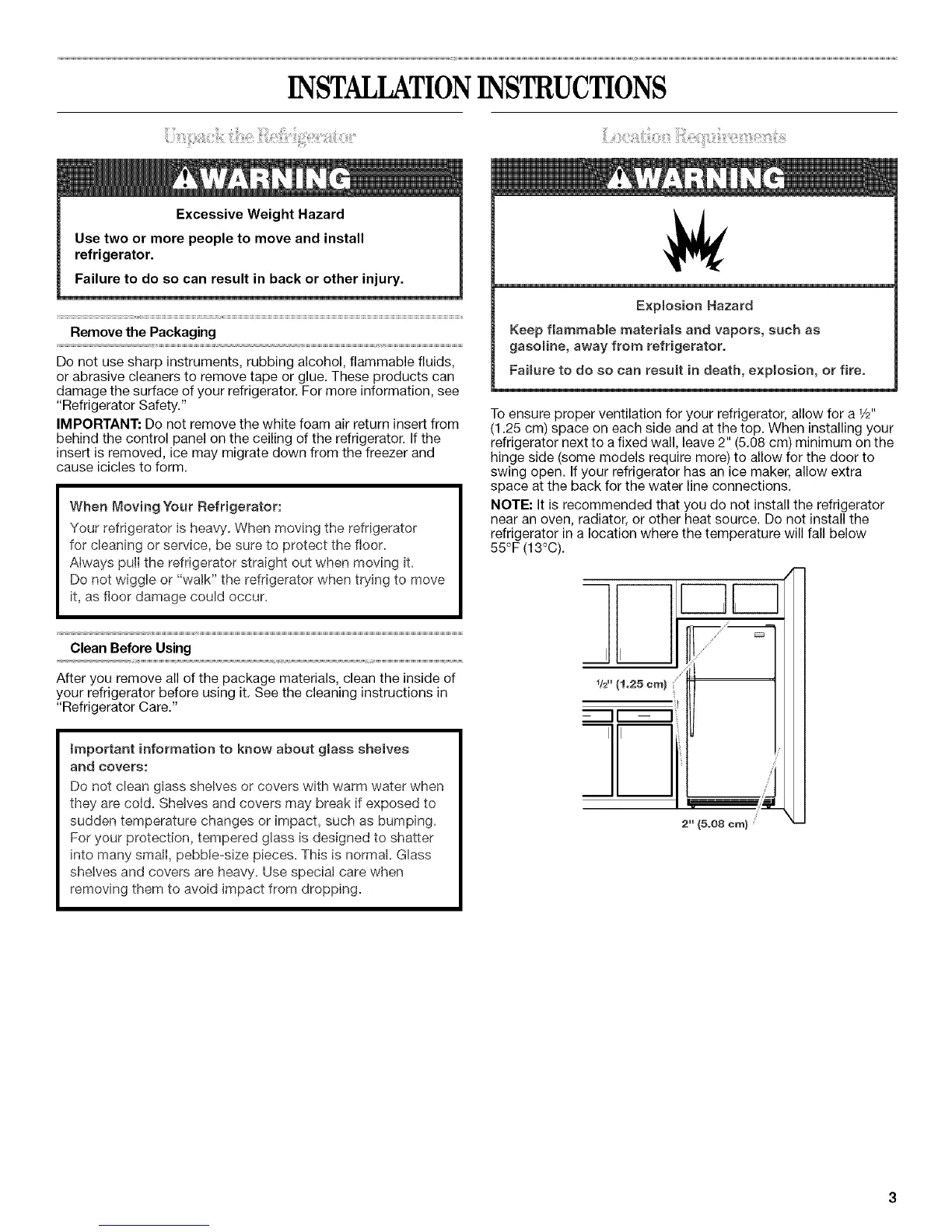 refrigerator next to a fixed wall, leave 2" (5.08 cm) minimum on the