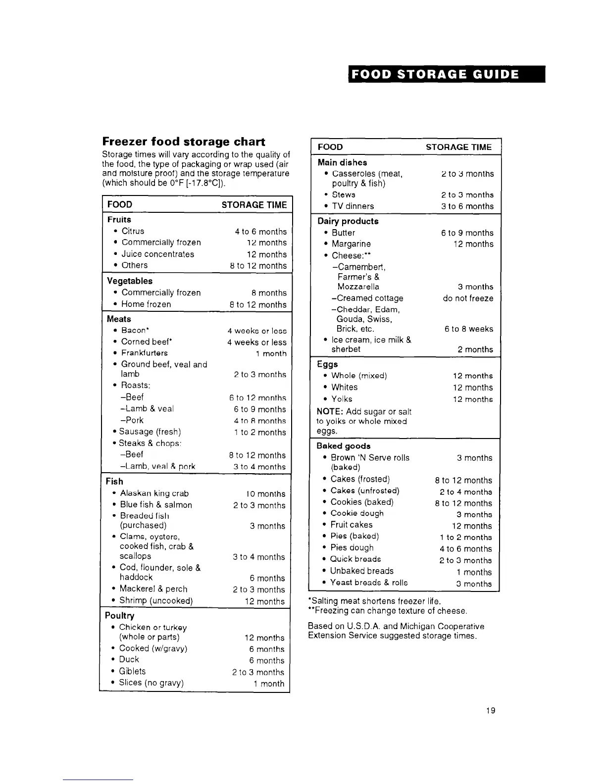 Extension Service suggested storage times.