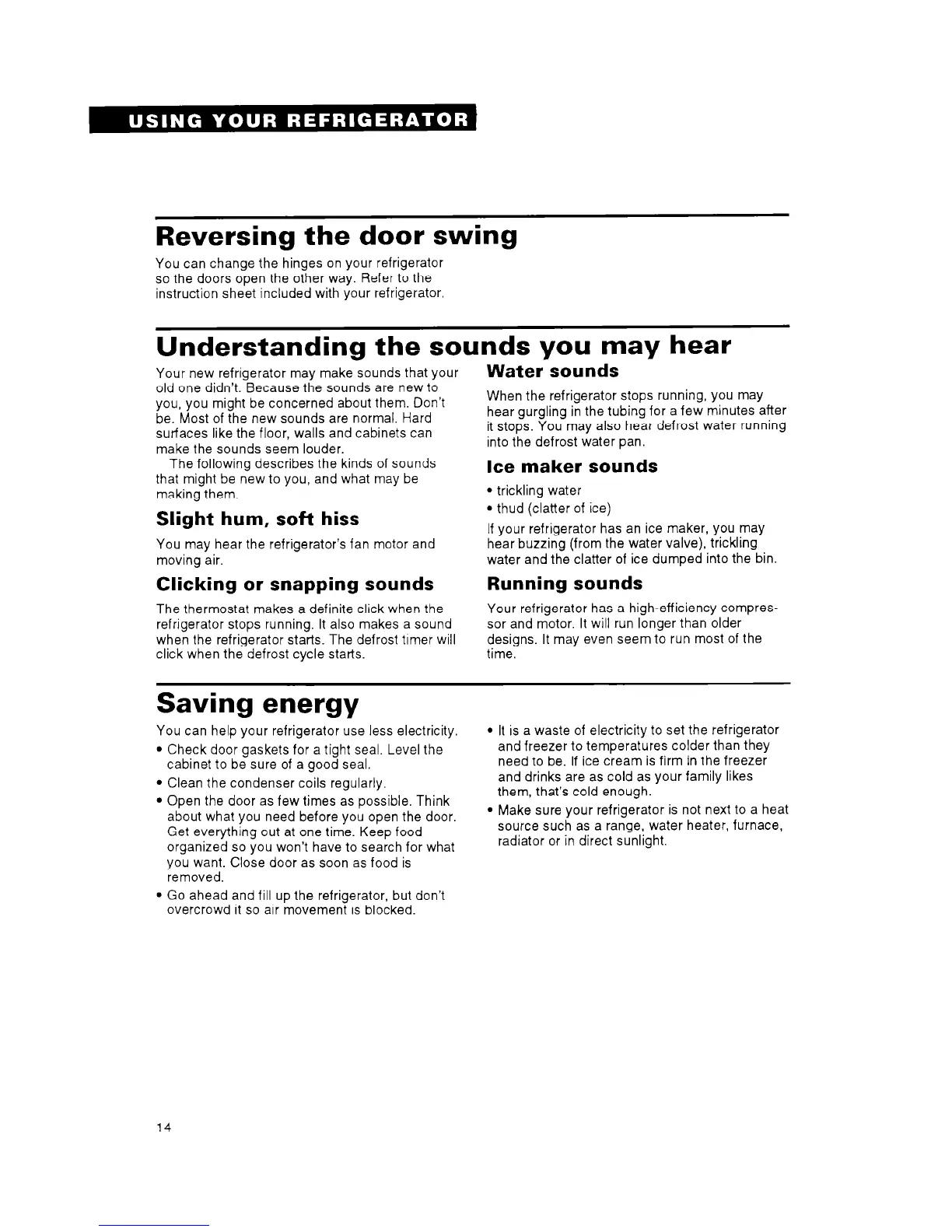 Your new refrigerator may make sounds that your
