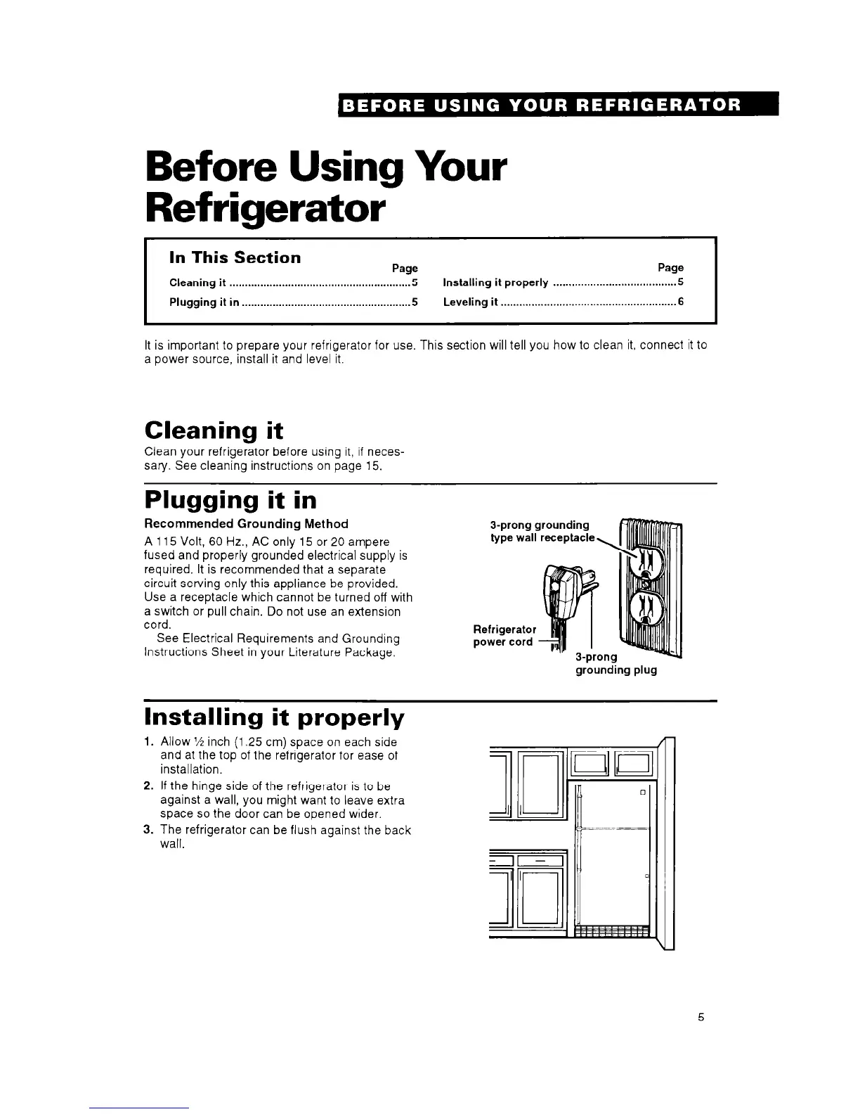 It is important to prepare your refrigerator for use. This section will tell you how to clean it, connect it to