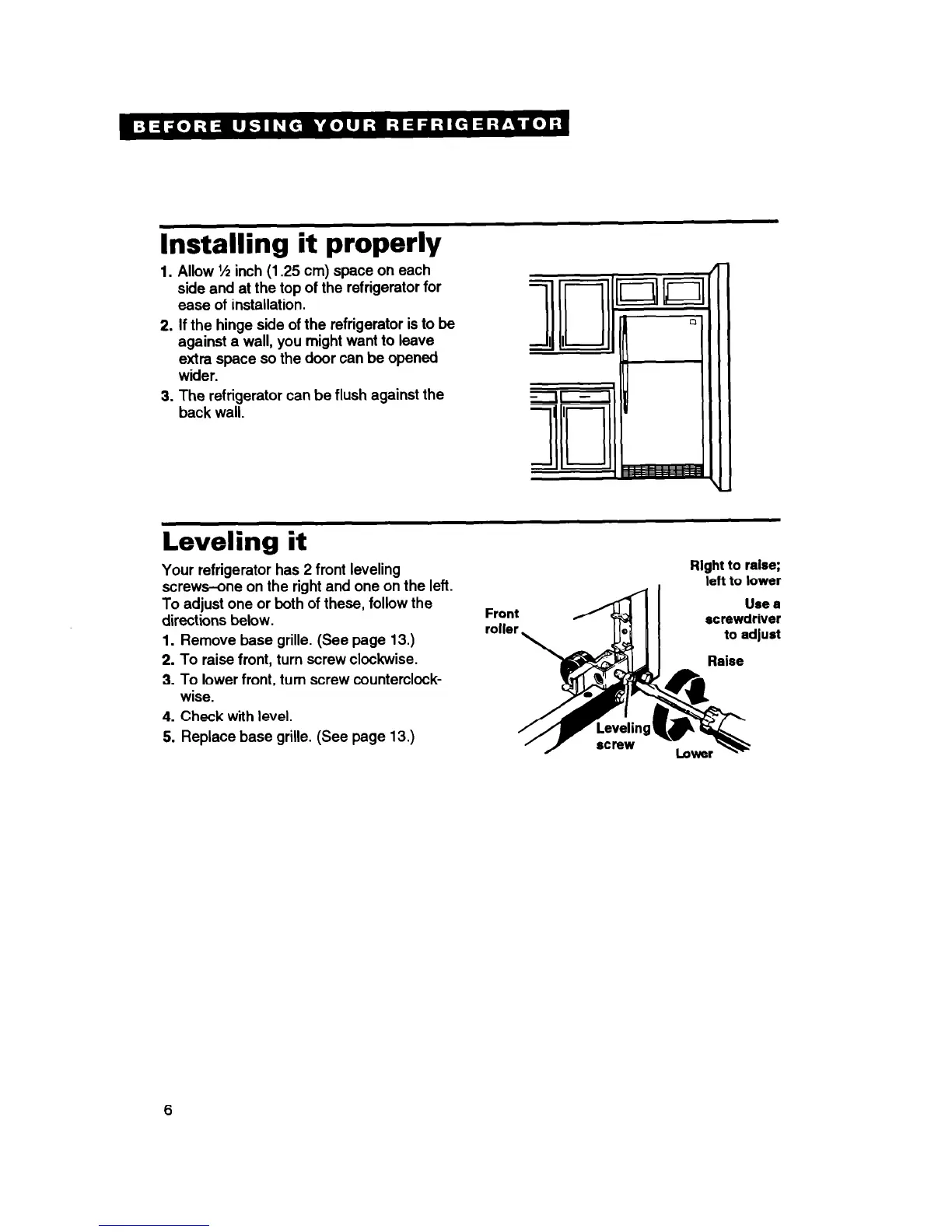 Your refrigerator has 2 front leveling
