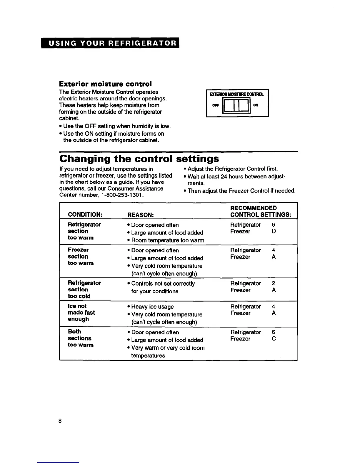 refrigerator or freezer, use the settings listed