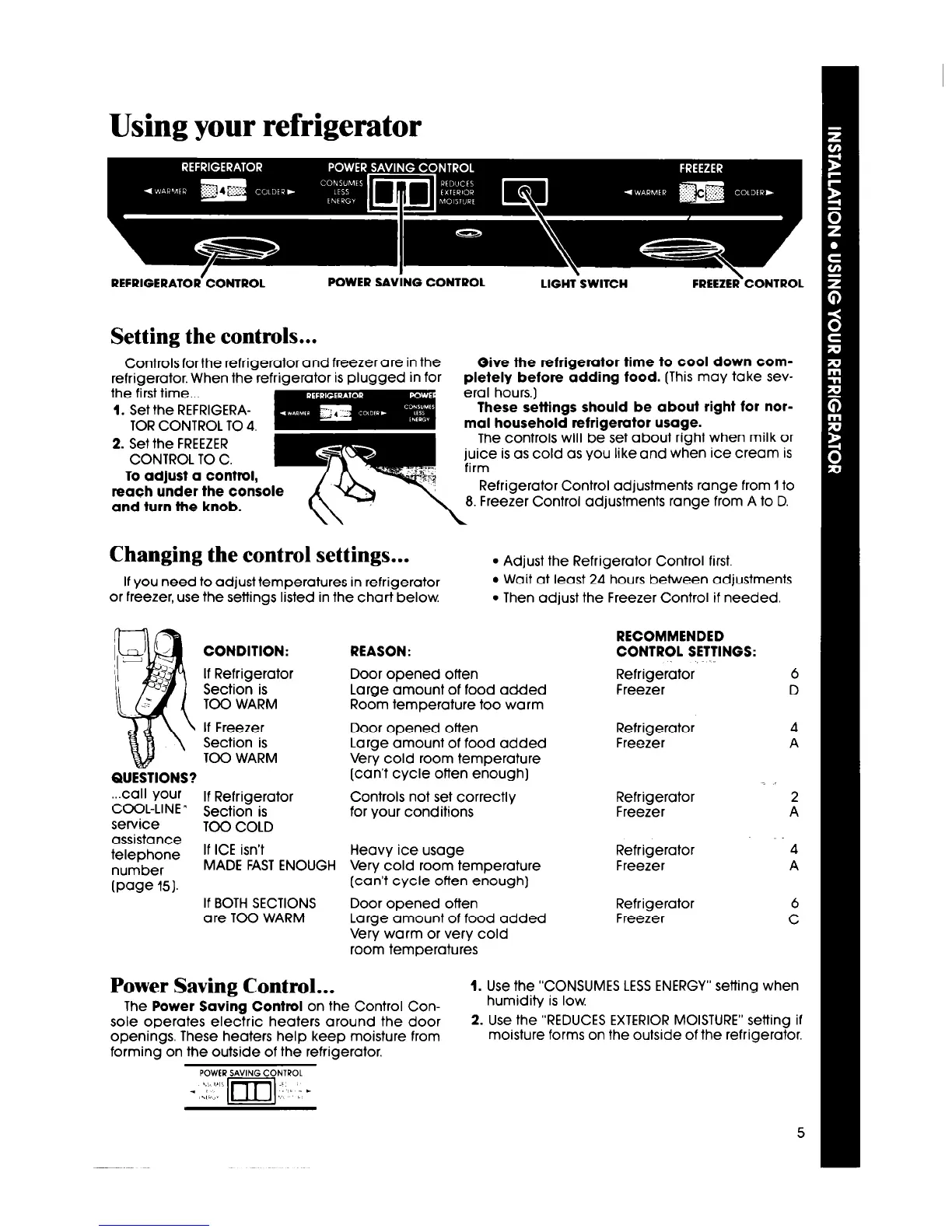 Refrigerator Control adjustments range from 1 to