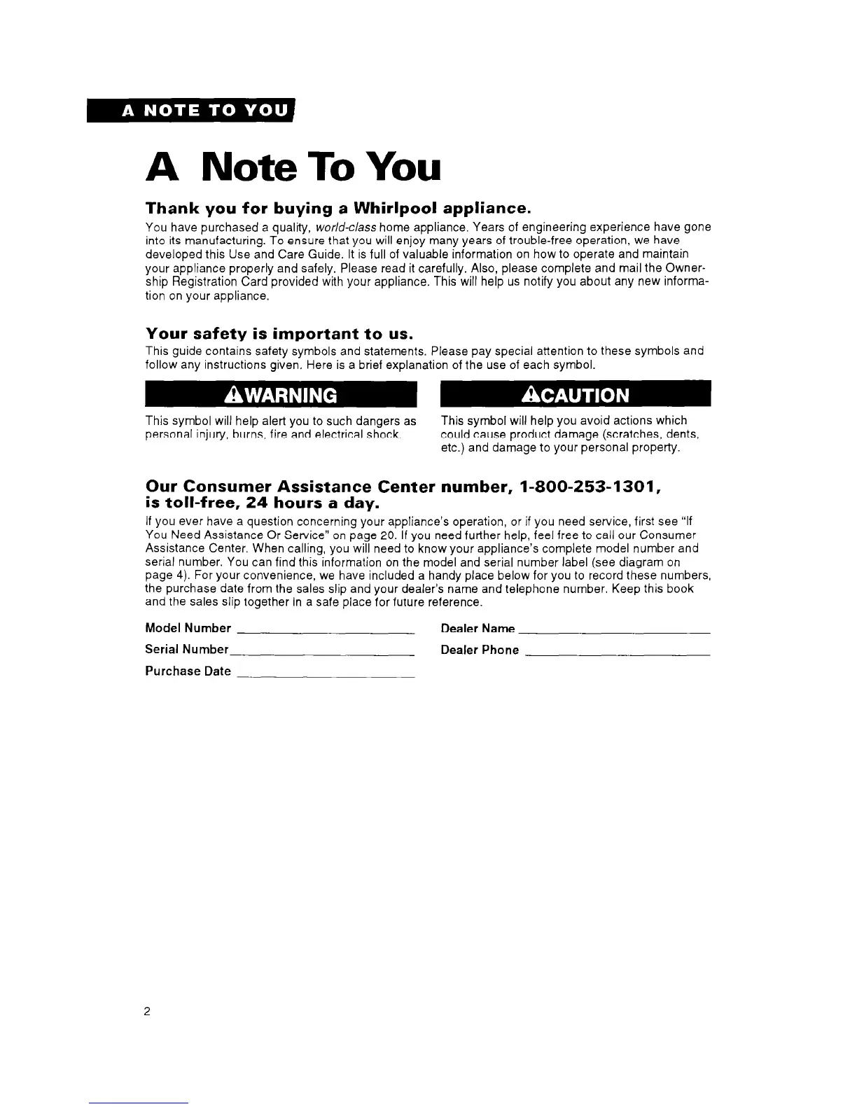 Thank you for buying a Whirlpool appliance.