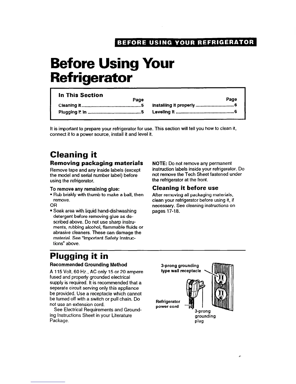 It is important to prepare your refrigerator for use. This section will tell you how to clean it,