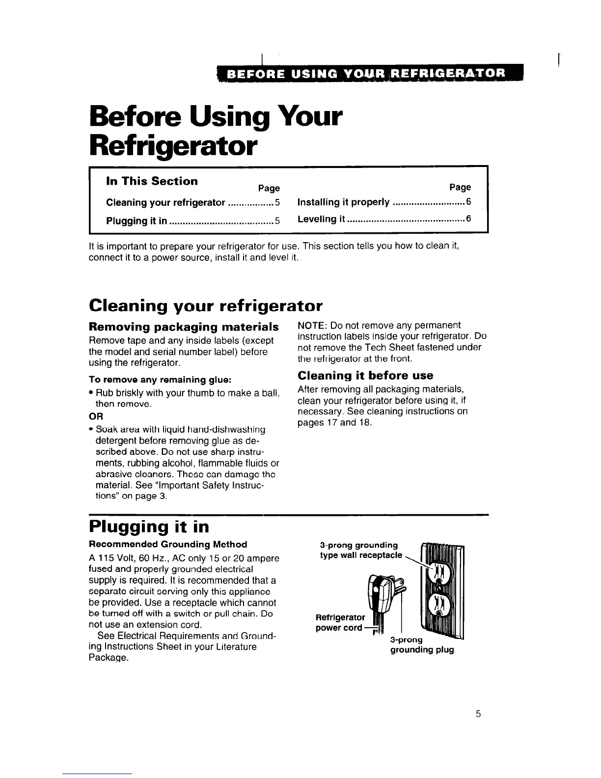 Cleaning your refrigerator . . . . . . . . . . . . . . . . . 5