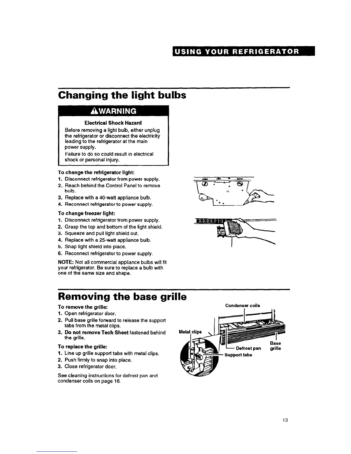 your refrigerator. Be sure to replace a bulb with