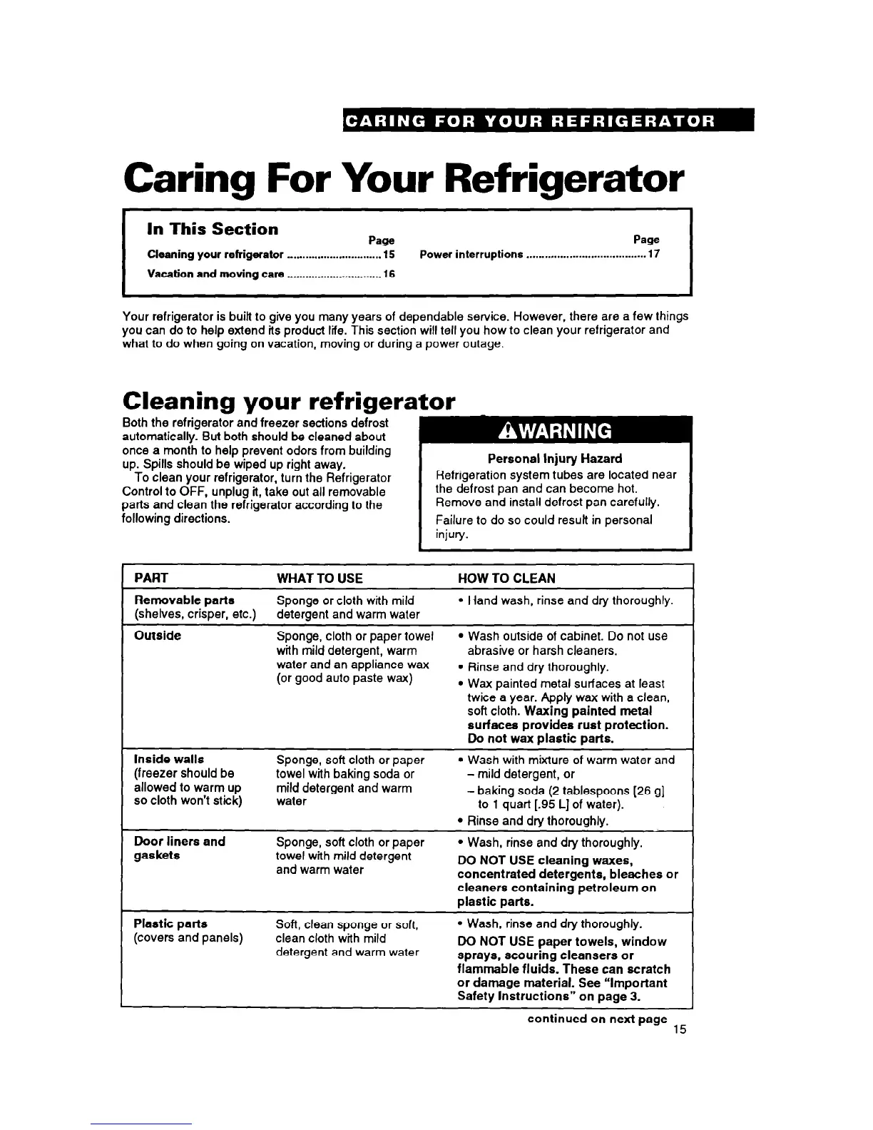 you can do to help extend its product life. This section will tell you how to clean your refrigerator and