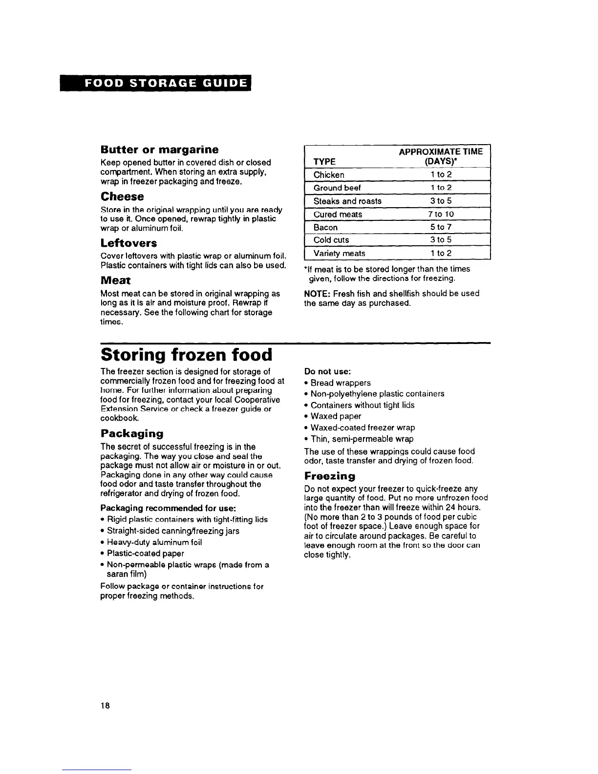 foot of freezer space.) Leave enough space for