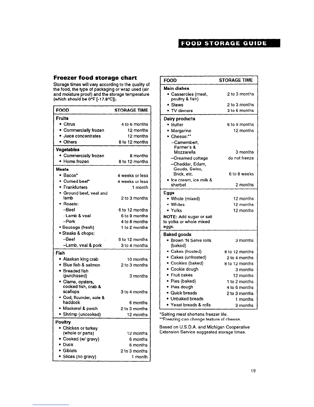 Extension Service suggested storage times.