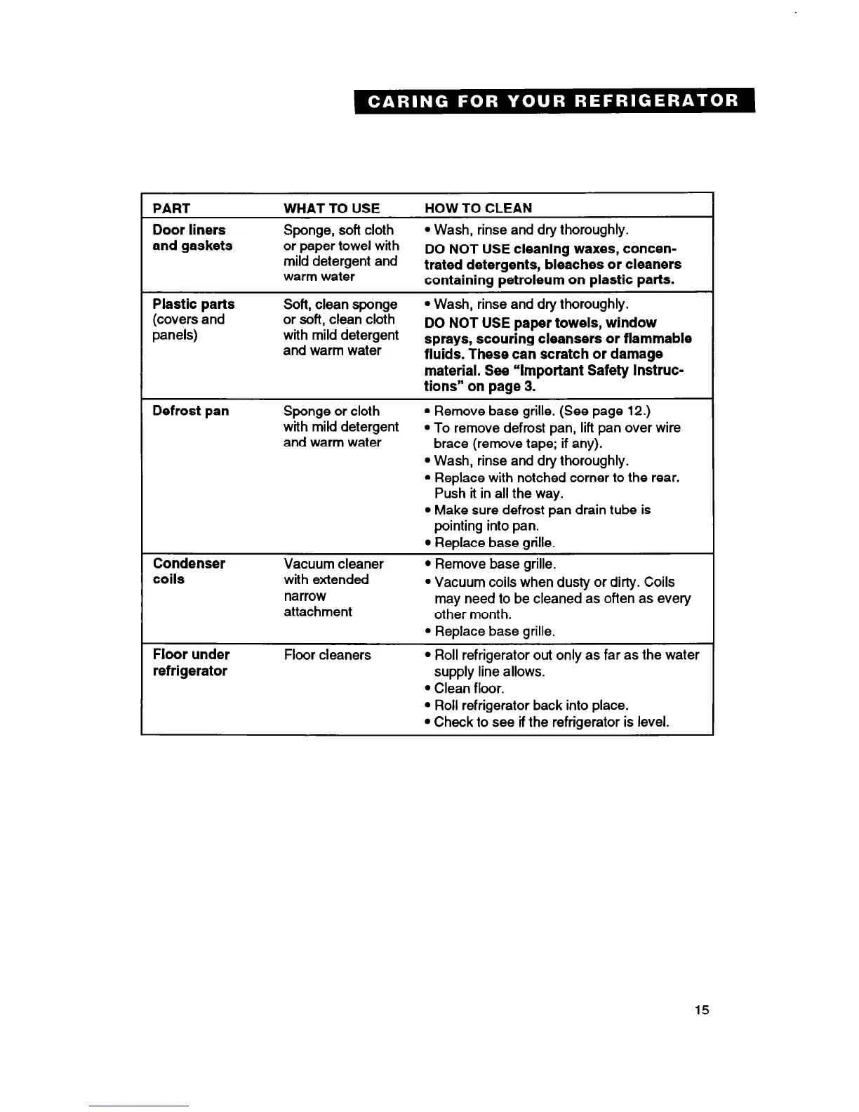 l Roll refrigerator out only as far as the water