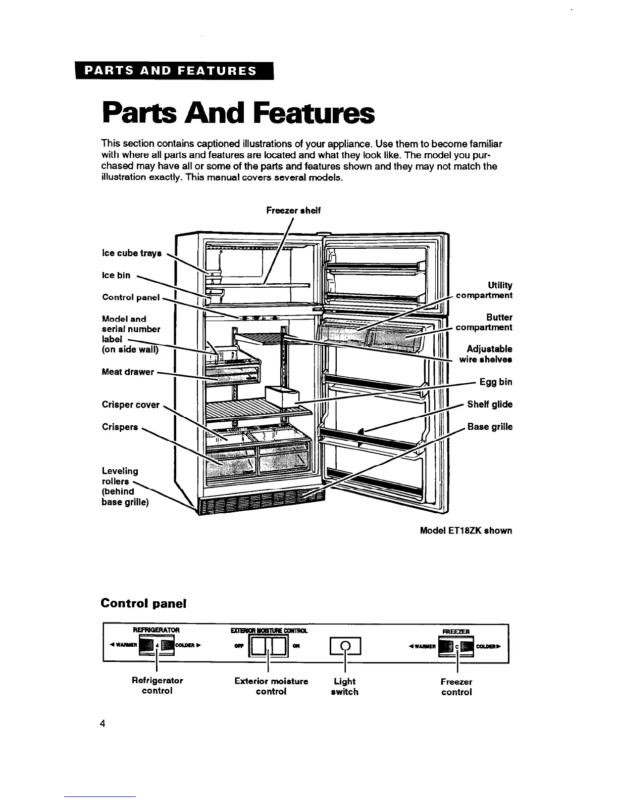 Whirlpool ETZOZK - Parts and Features