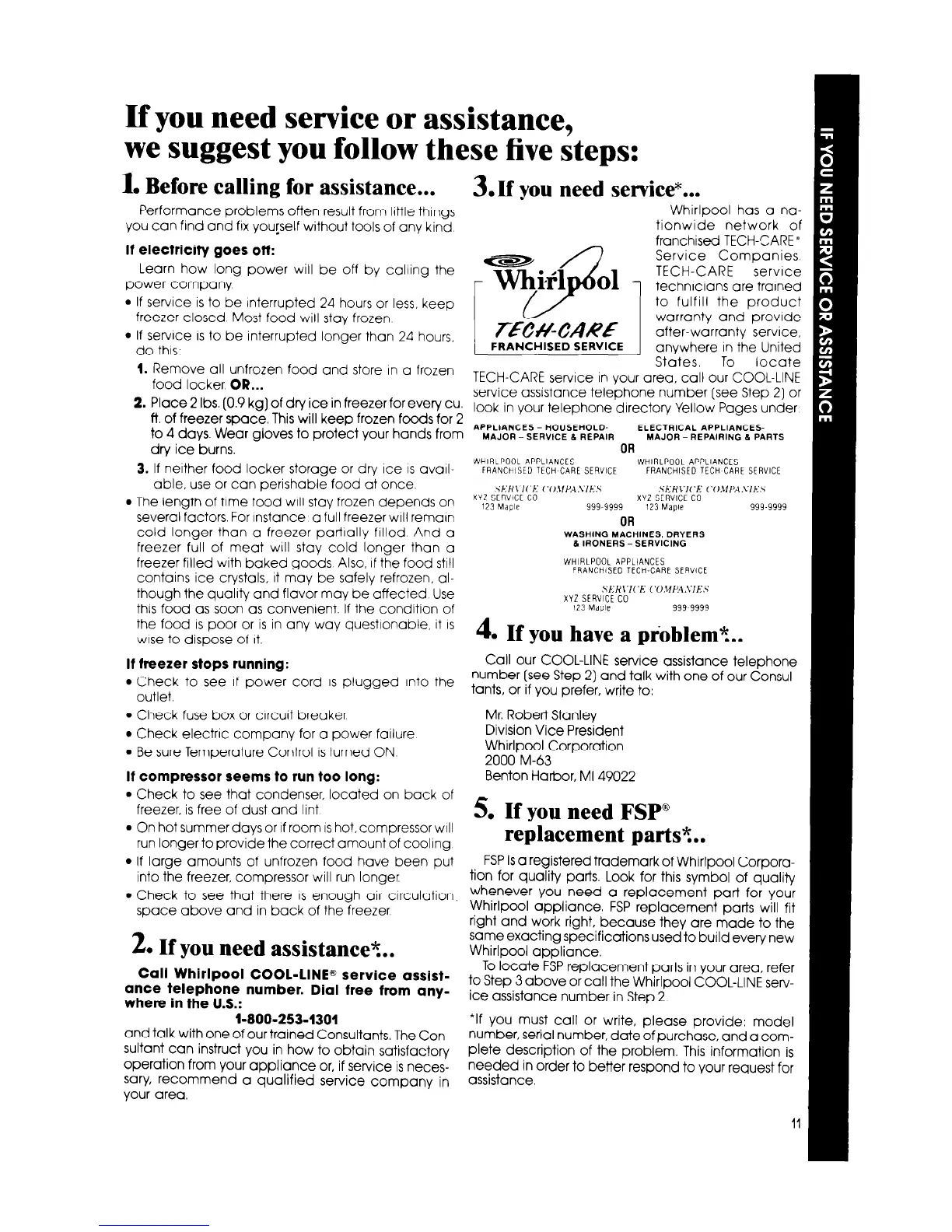 to Step 3 above or toll the Whirlpool COOL-LINE serv.