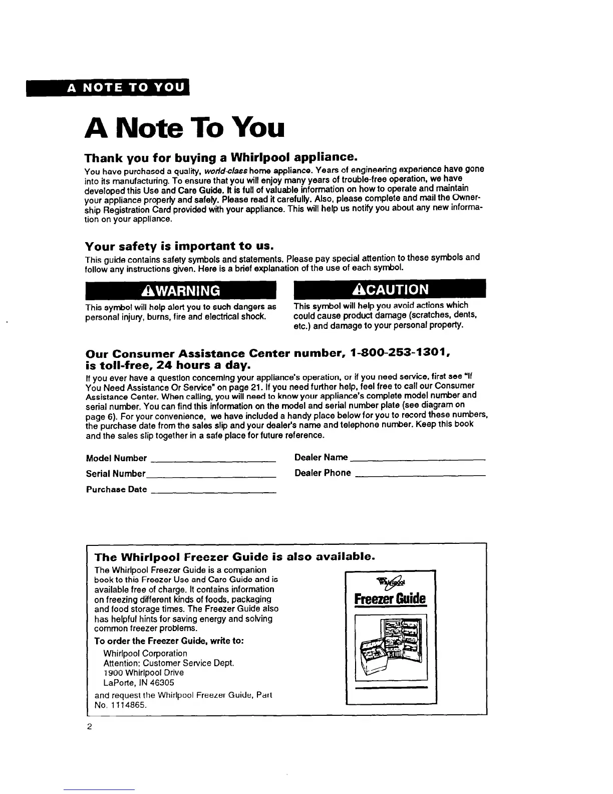 You Need Assistance Or Service” on page 21. If you need further help, feel free to call our Consumer