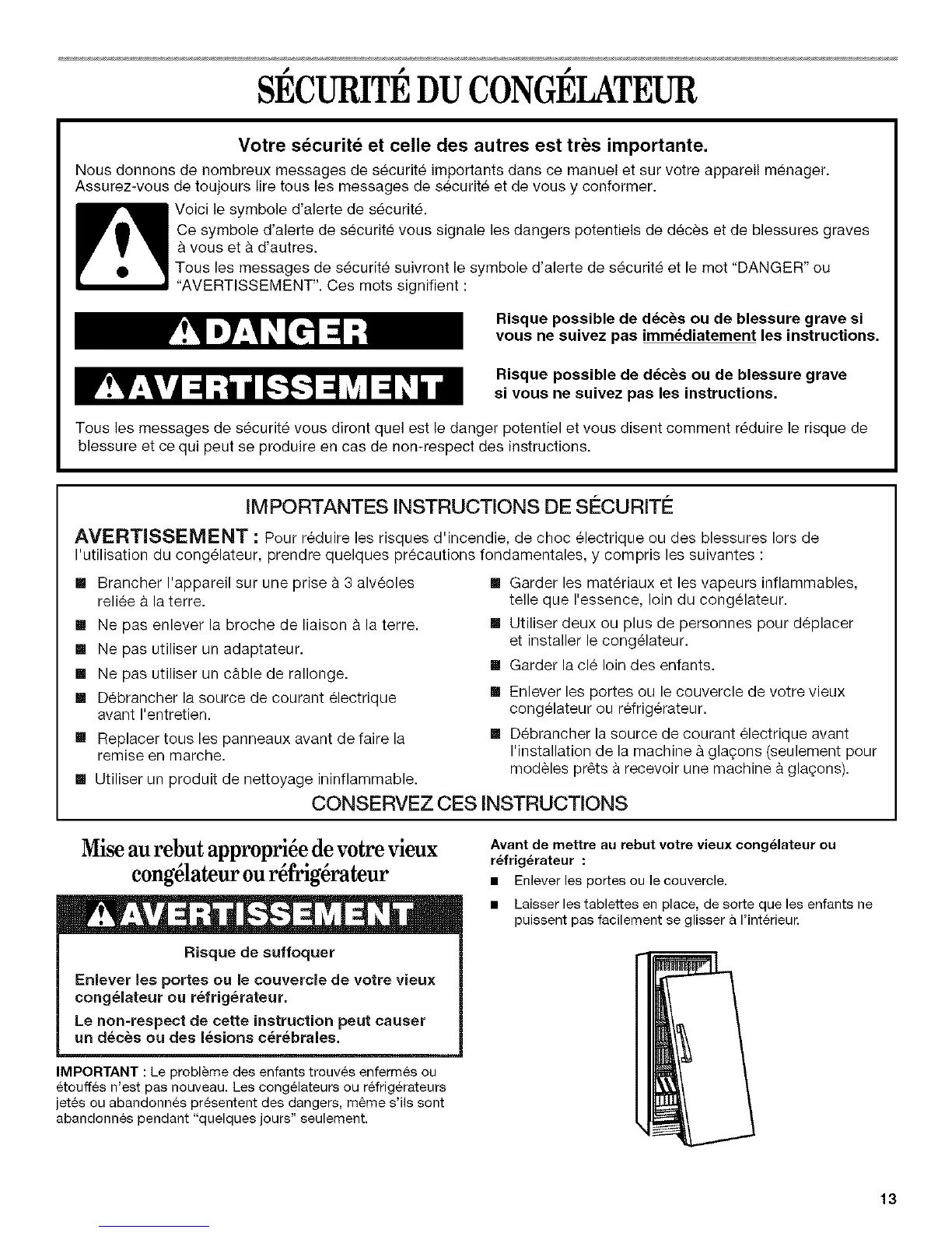 • Laisser les tablettee en place, de sorte que les enfants nepuissent pas facilement se glisser h I'int6rieur.