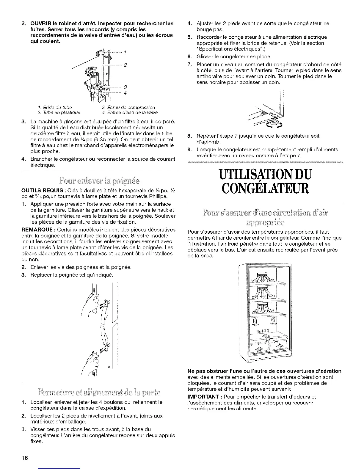 4. Ajuster les 2 pieds avant de sorte que le congelateur ne