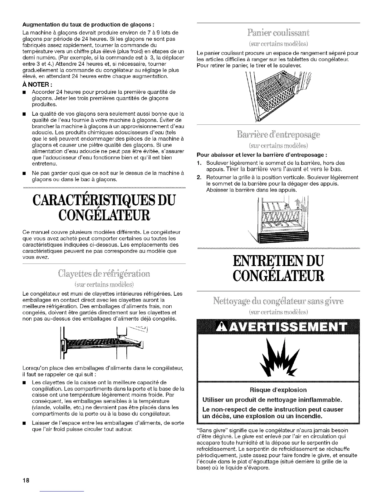 Ce manuel couvre plusieurs modeles differents. Le congelateur