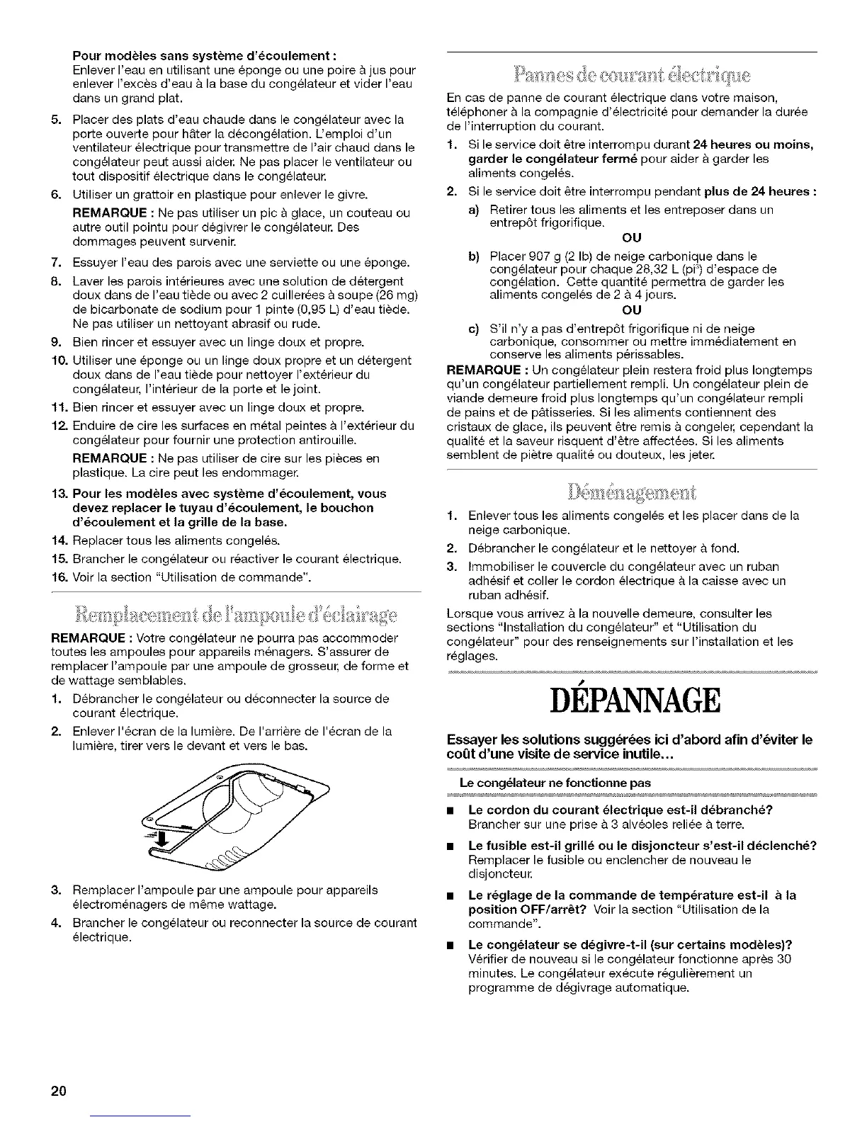 15. Brancher le congelateur ou reaotiver le courant eleotrique.