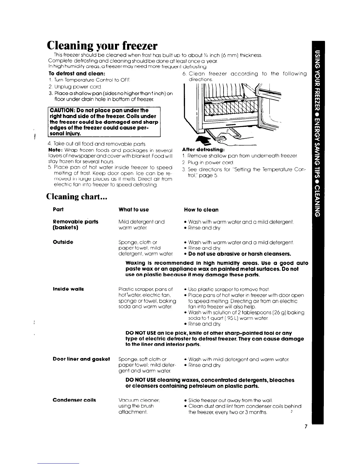 This freezer should be cleaned when frost has built up to about ‘/n inch (6 mm] thickness.