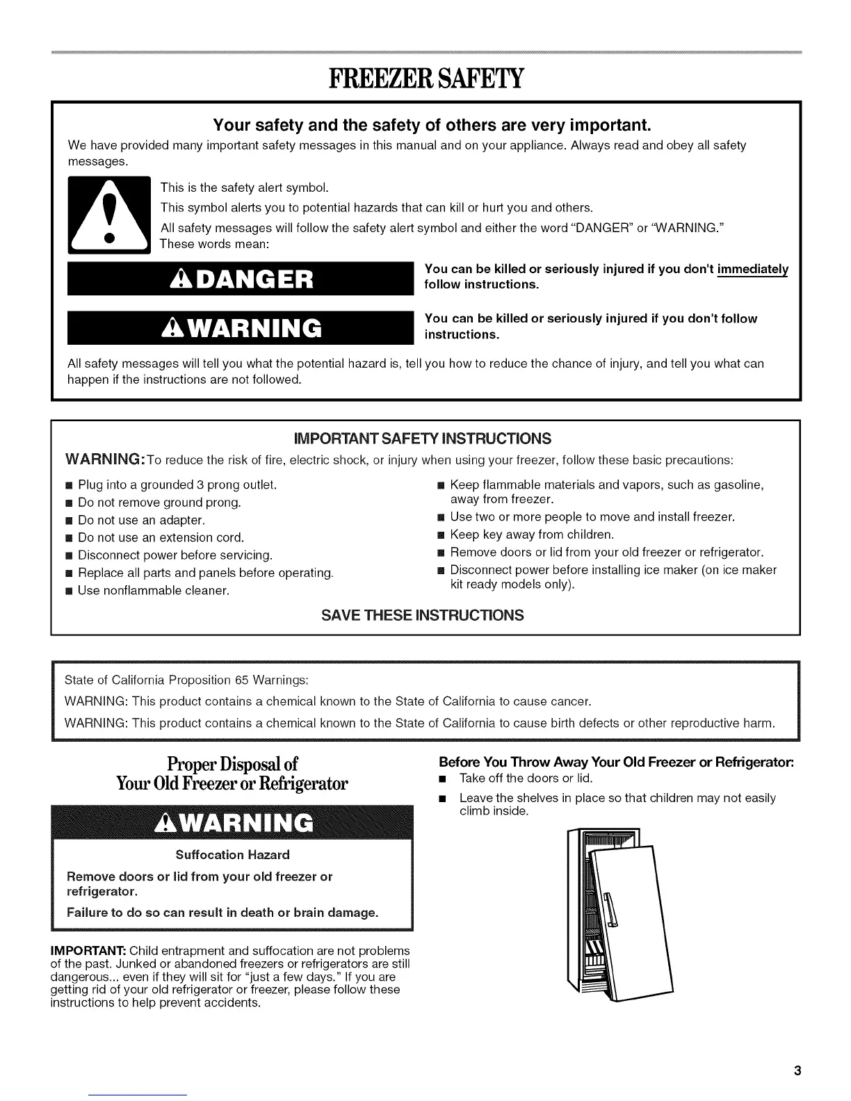 WARNING:To reduce the risk of fire, electric shock, or injury when using your freezer, follow these basic precautions:
