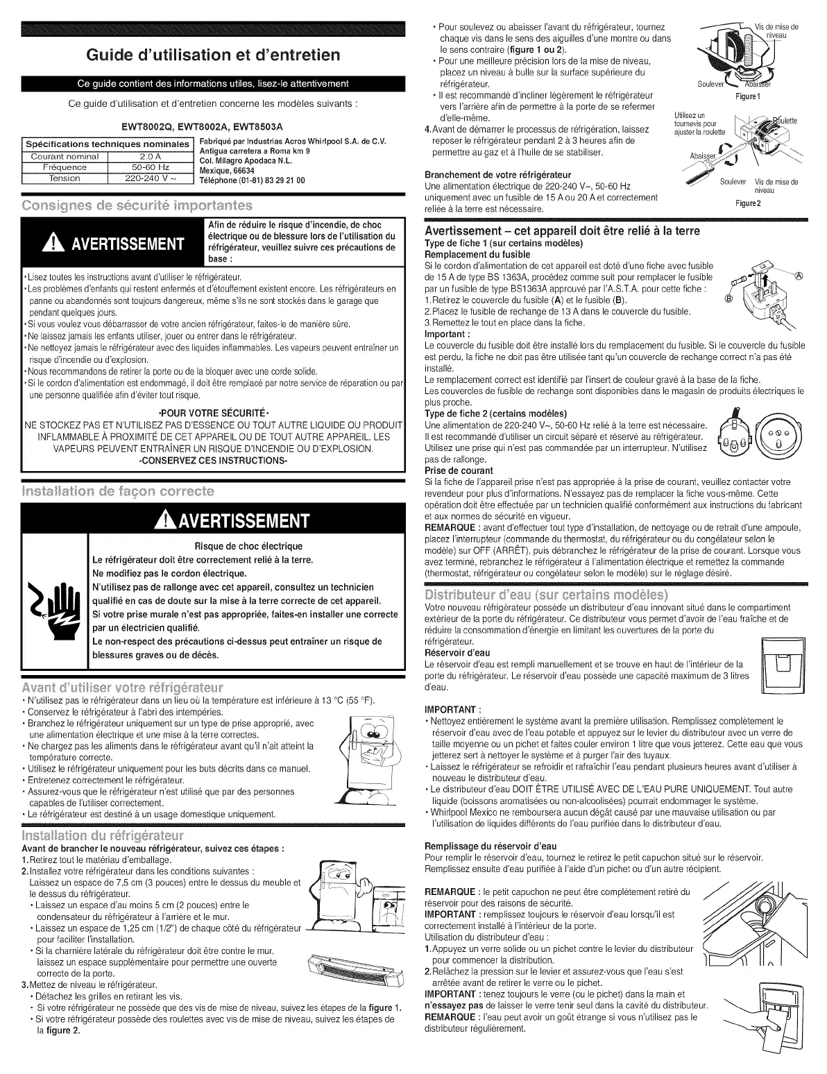 • Whirlpool Mexico ne remboursera aucun deg&t cause par une mauvaise utilisation ou par