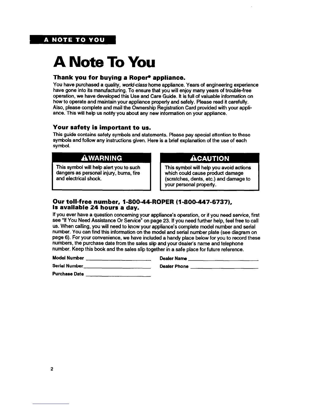 Thank you for buying a Roper@ appliance.
