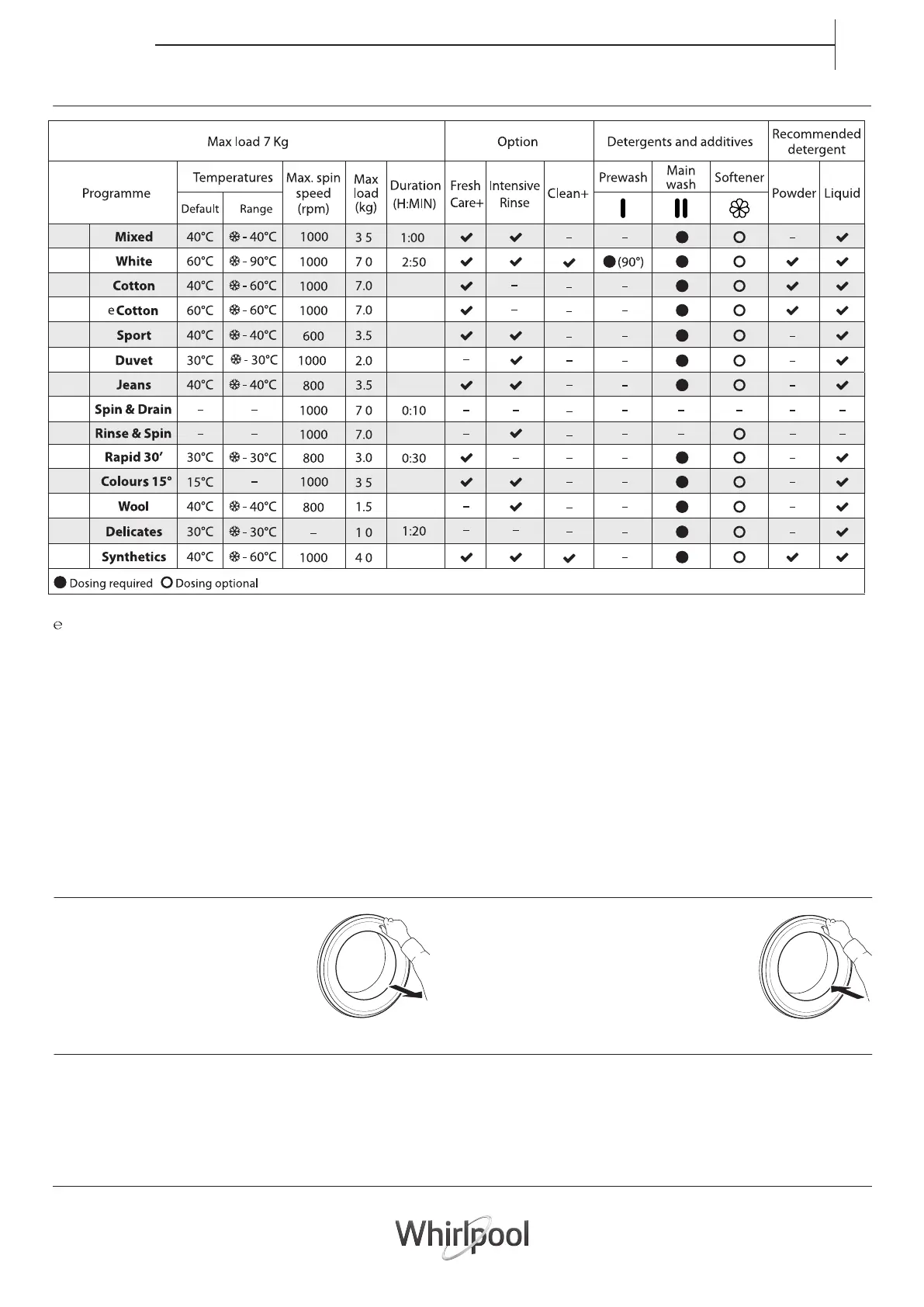 programme duration to your wash load.