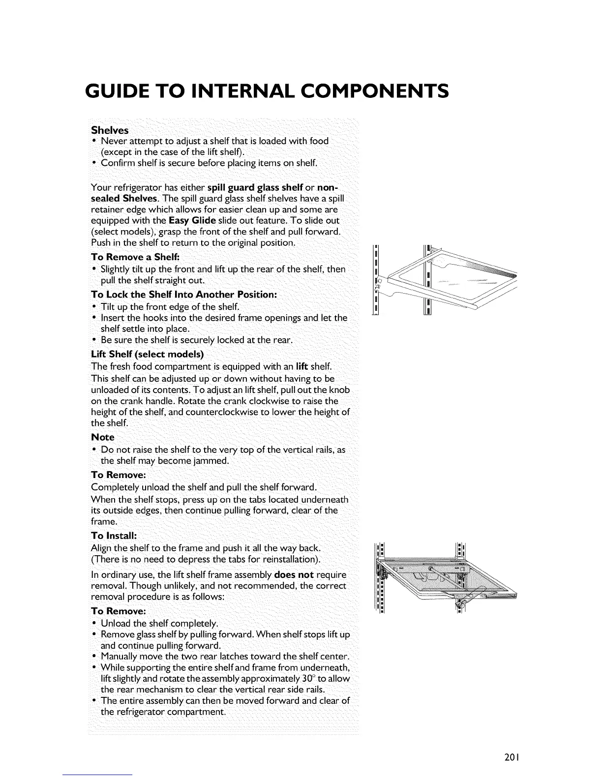 Removeglassshelf by pulling forward. When shelf stopslift up