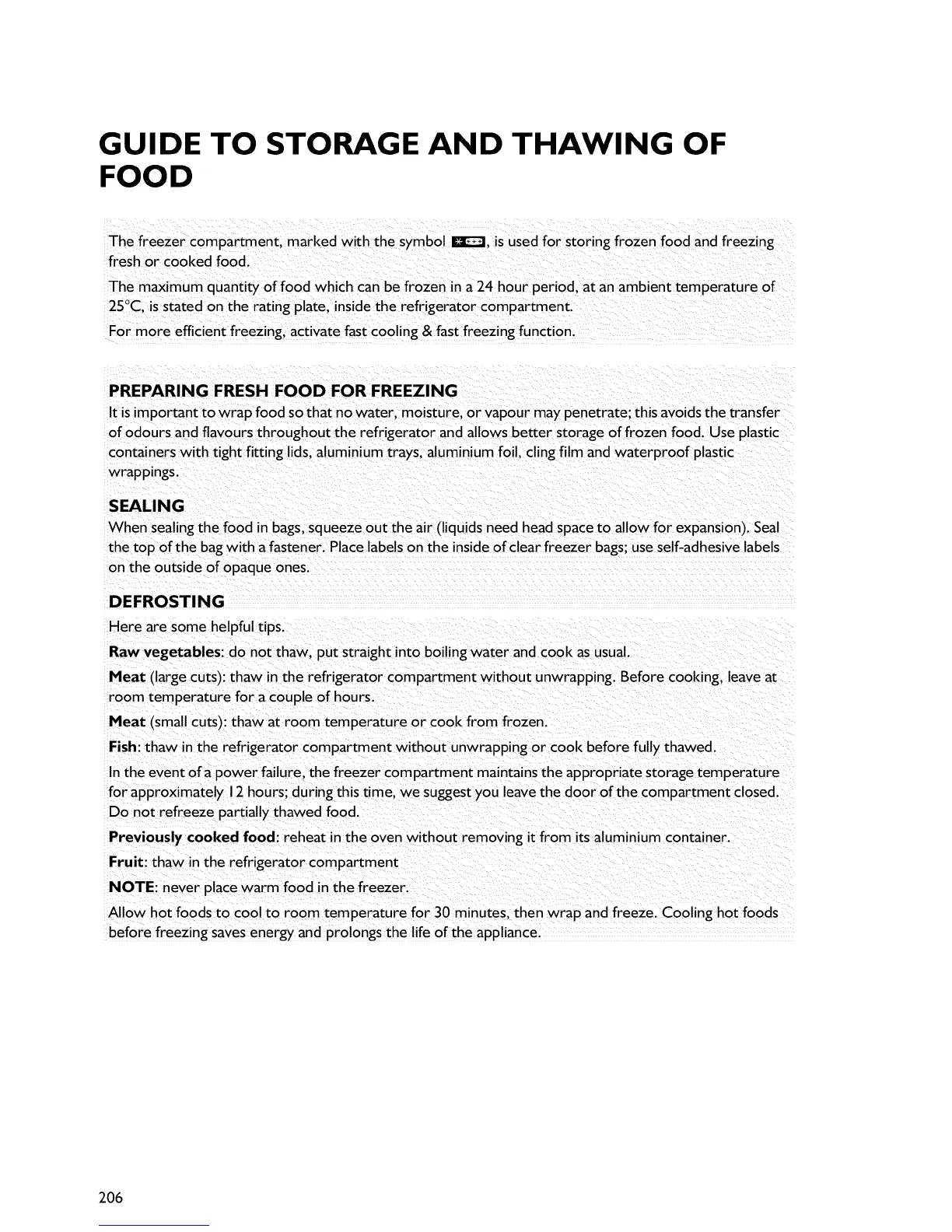 It isimportant to wrap food sothat no water, moisture, or vapour may penetrate; this avoids the transfer