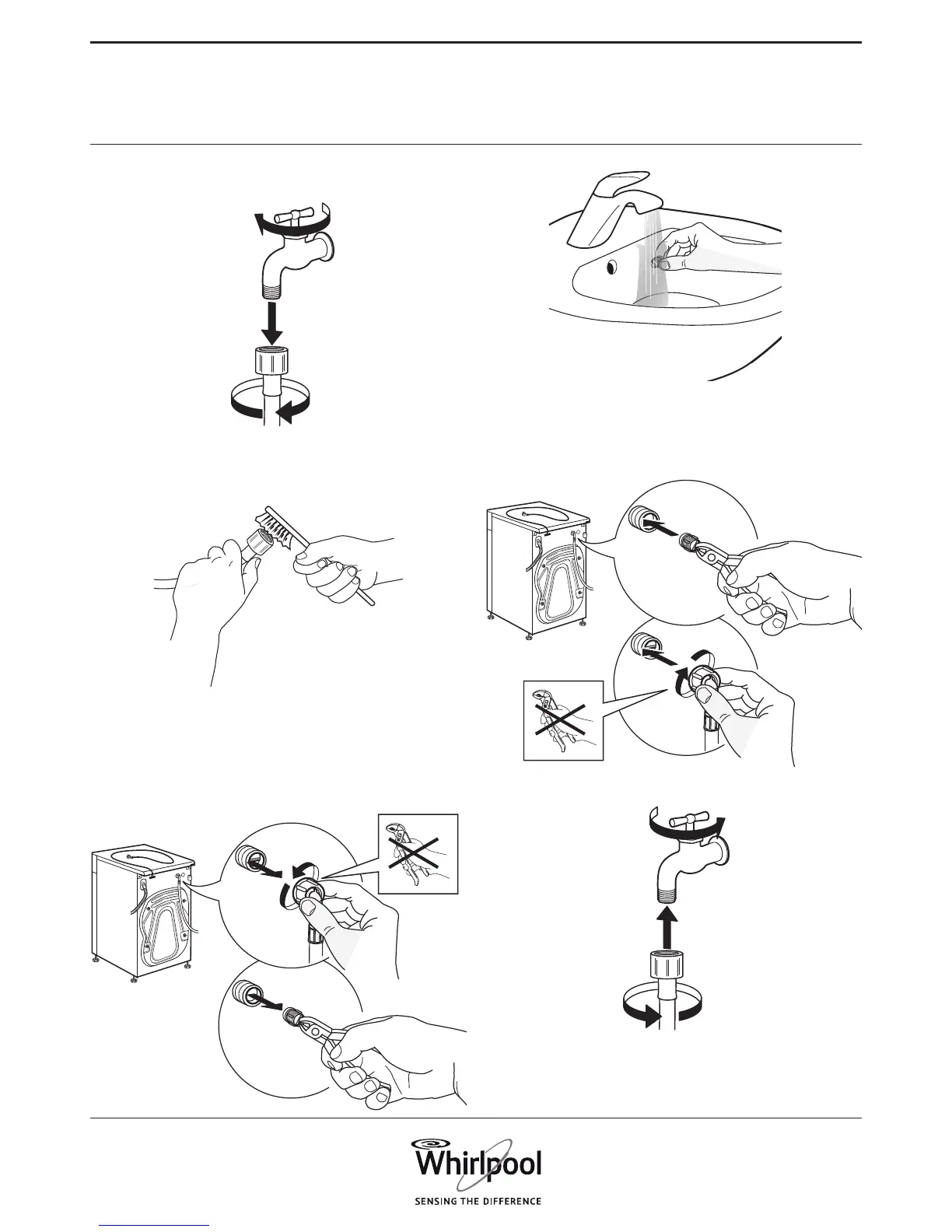 not use a tool to connect the inlet hose. Open the