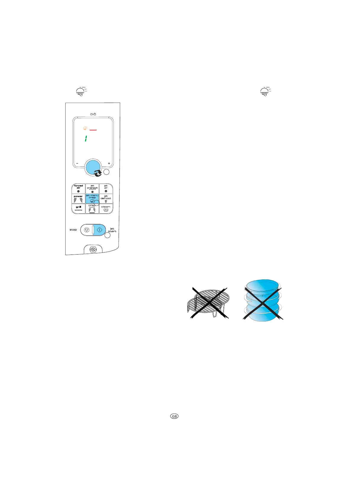 PRESS THE JET MENU CRISP BUTTON repeatedly to select the food