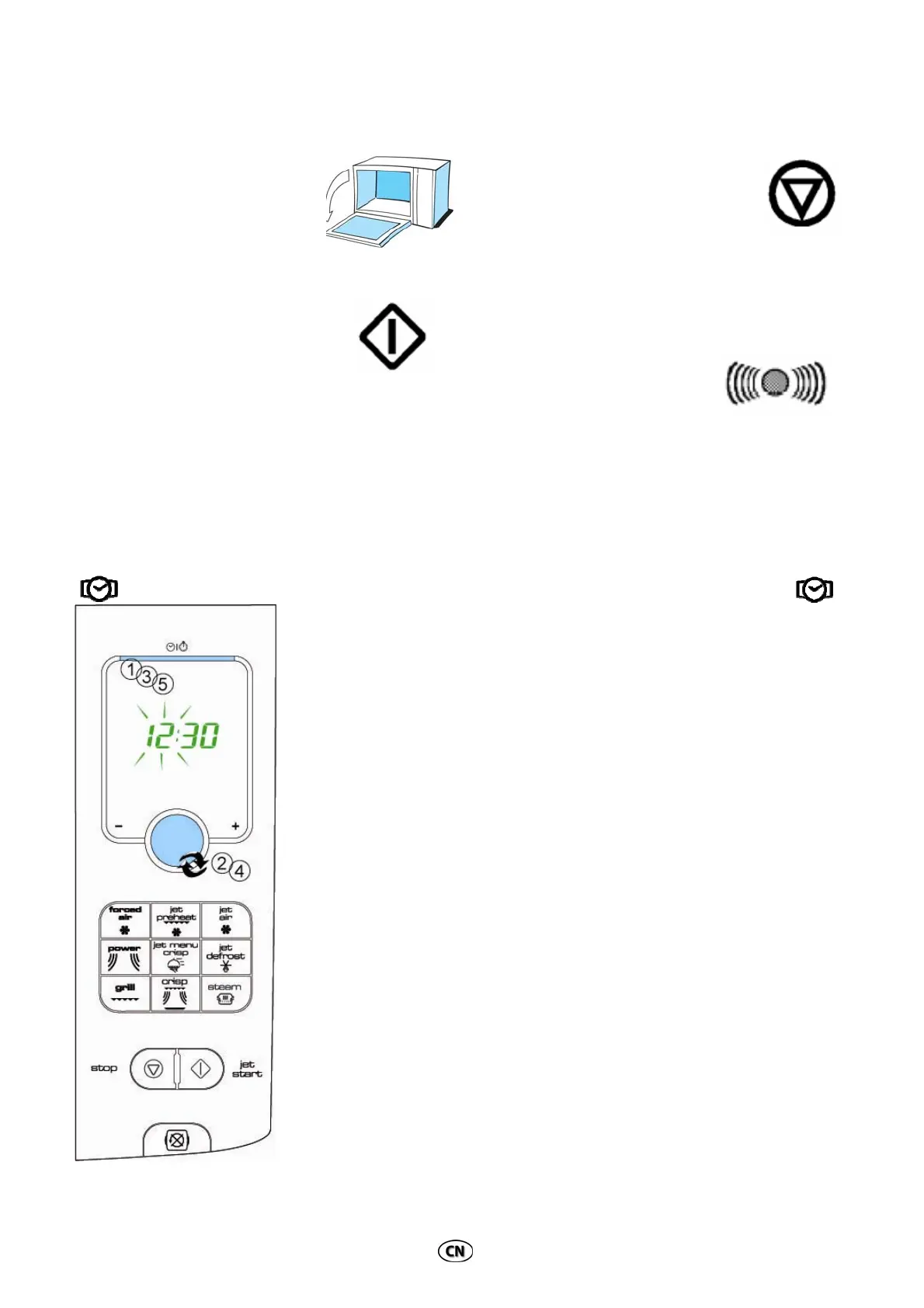 當微波爐首次接駁至電源或者停電後,顯示屏會空白一片。如果時鐘