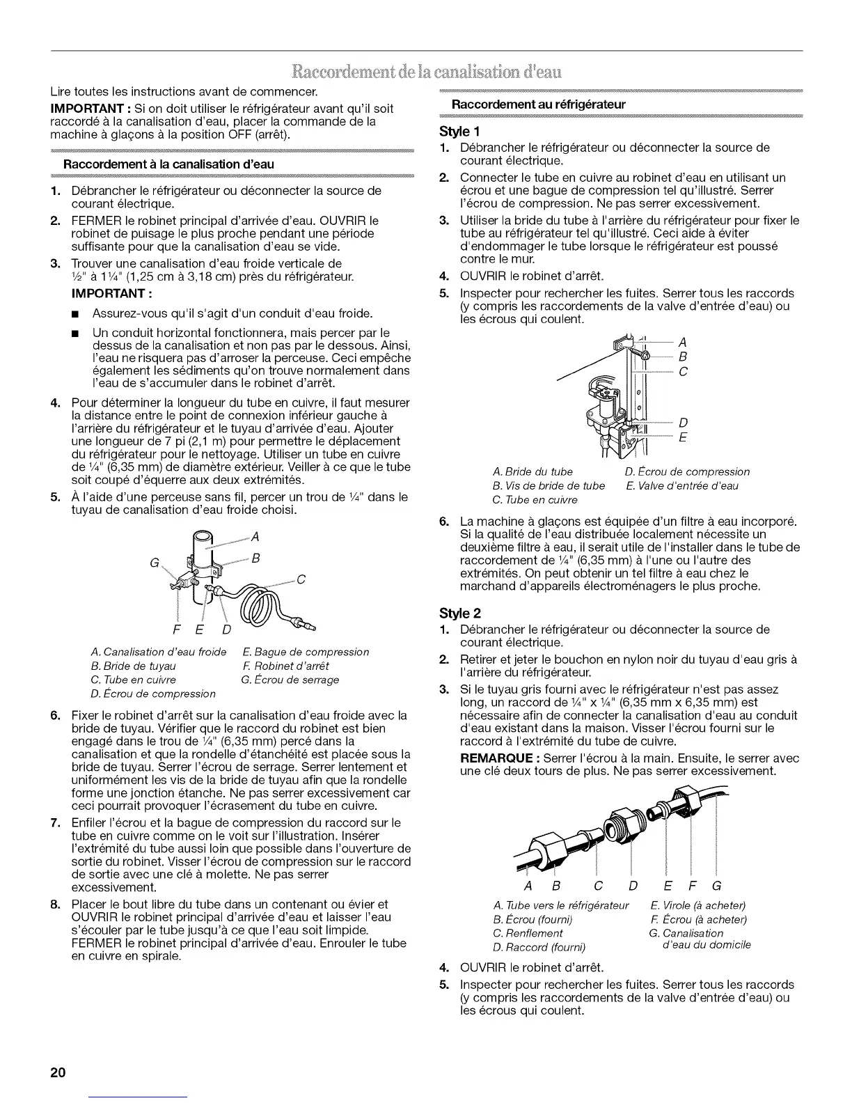 du refrig6rateur pour le nettoyage. Utiliser un tube en cuivre