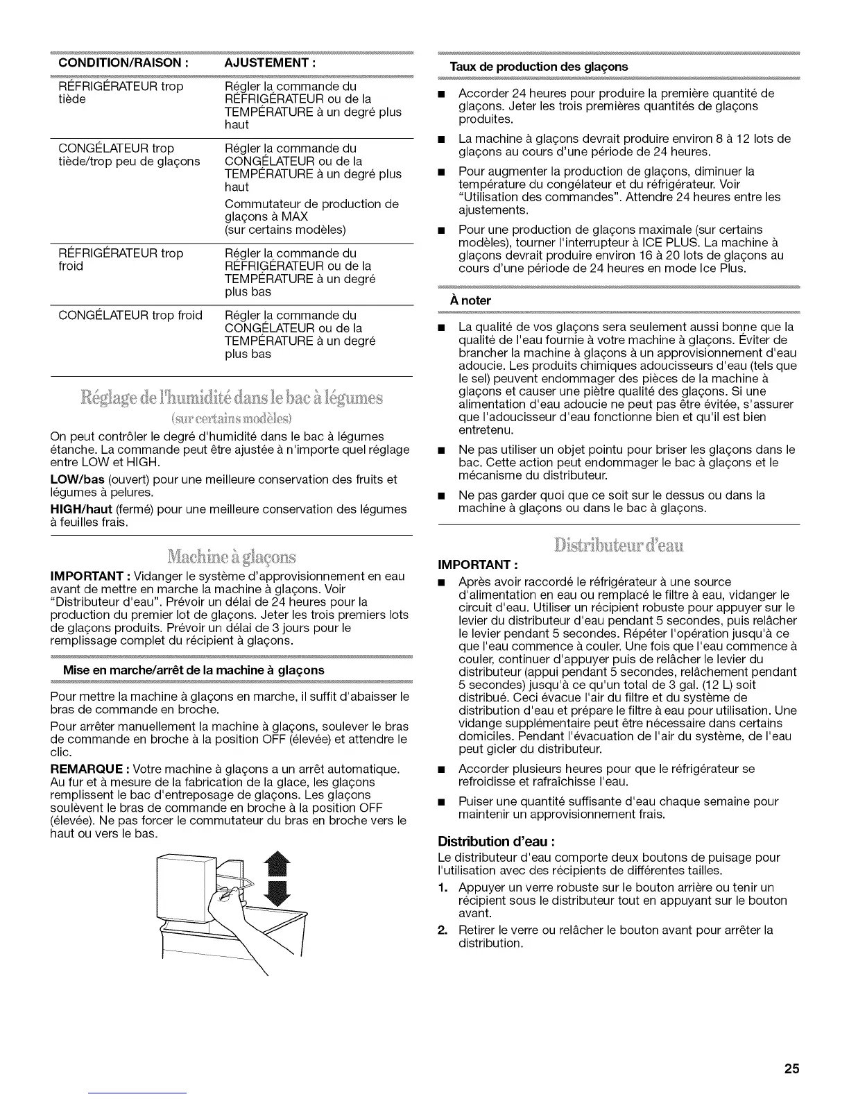 levier du distributeur d'eau pendant 5 secondes, puis rel&cher