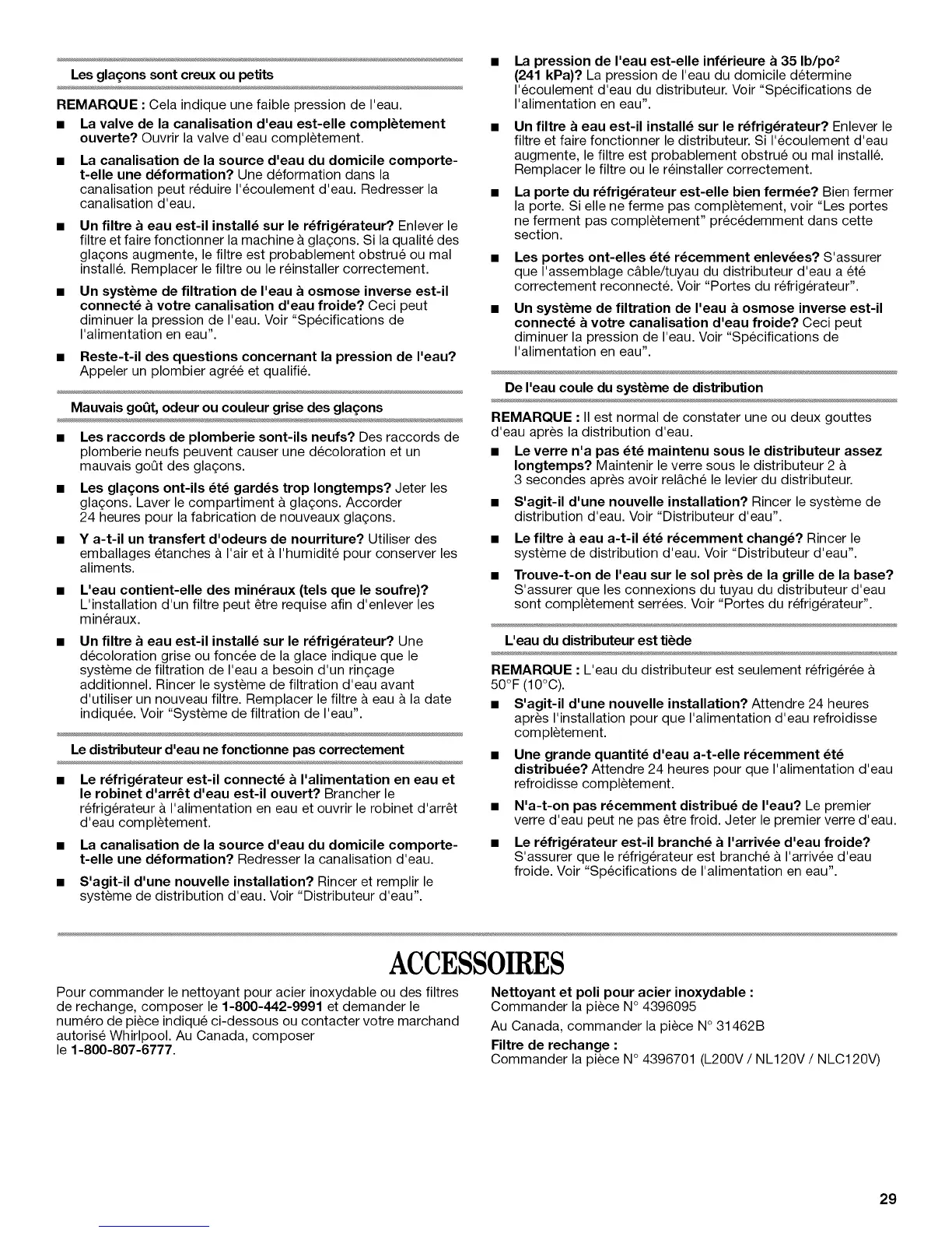 Pour commander le nettoyant pour acier inoxydable ou des filtres
