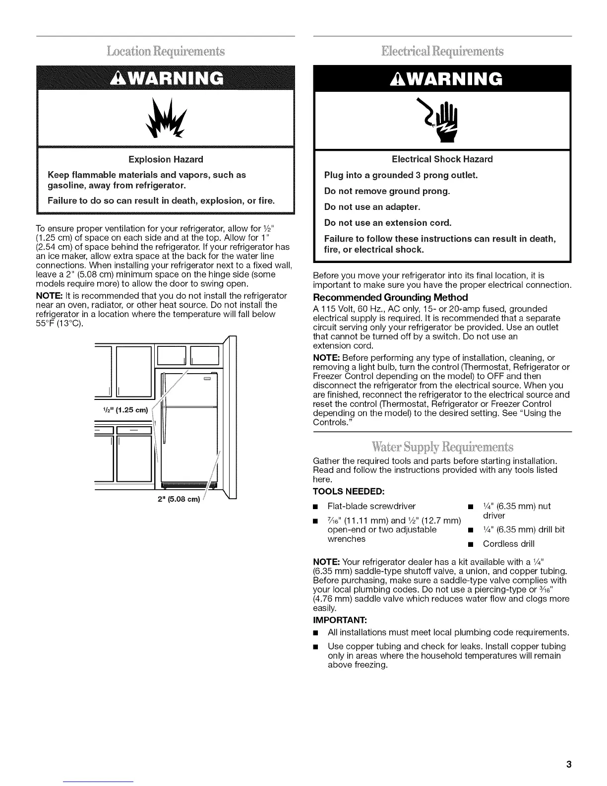 (2.54 cm) of space behind the refrigerator. If your refrigerator has