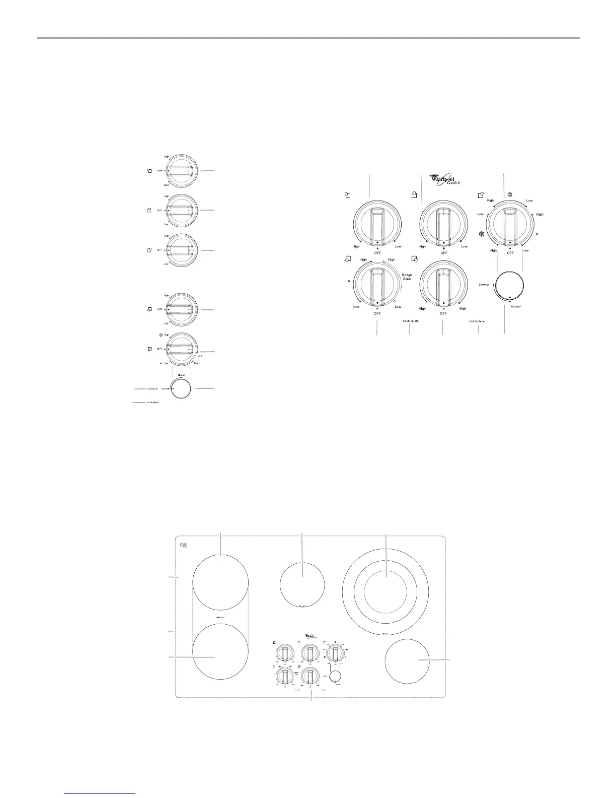 This manual covers different models. The cooktop you have purchased may have some or all of the items listed. The locations and