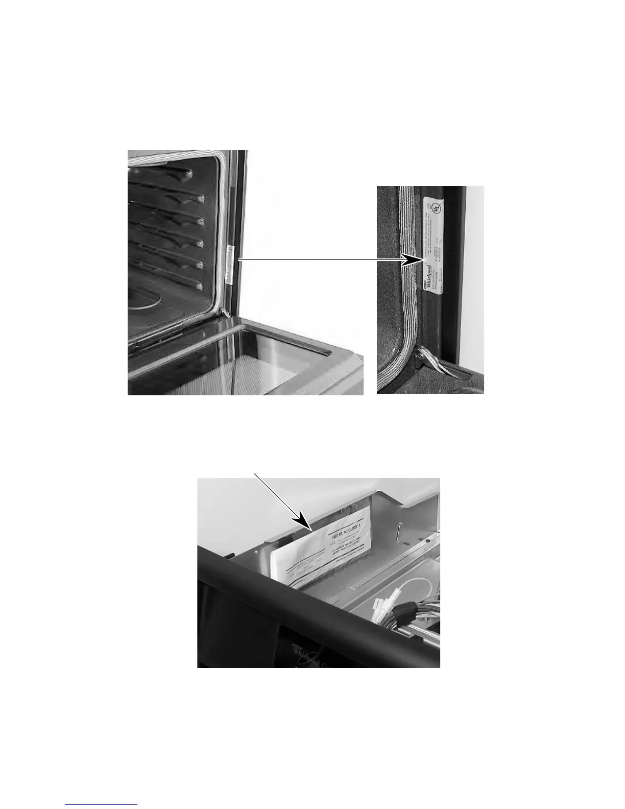 The Model/Serial Number label and Tech Sheet locations are shown below.