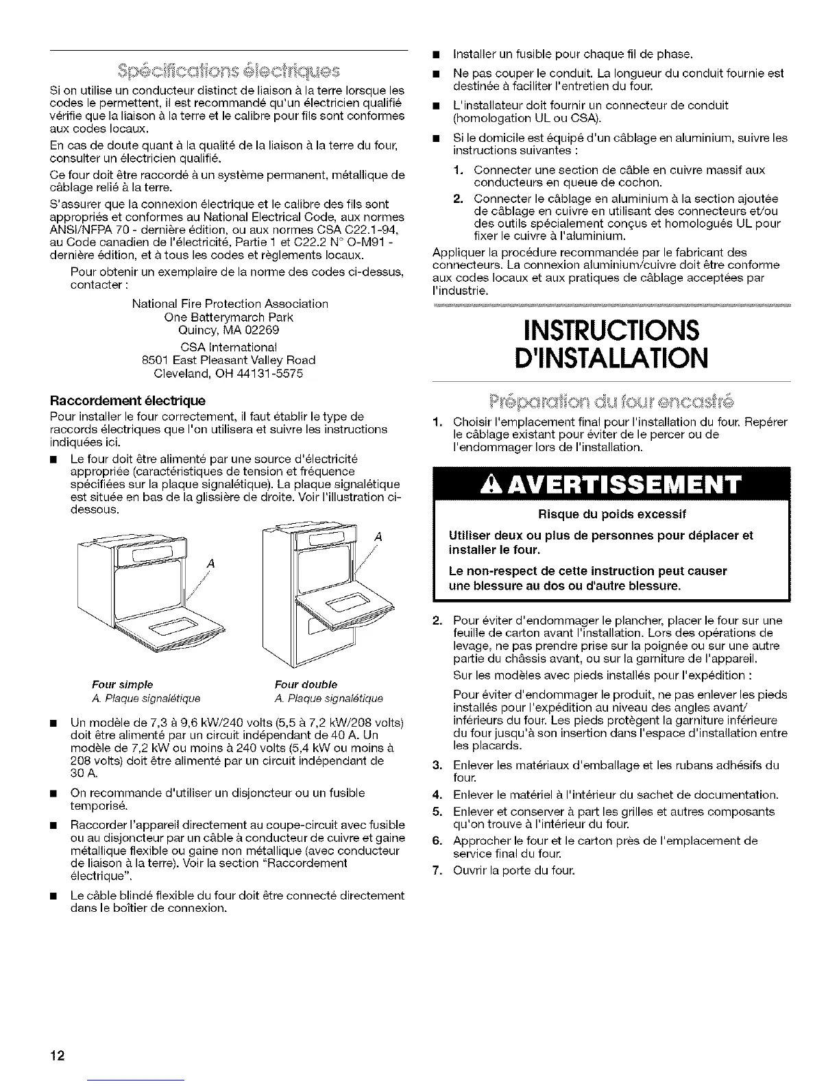 ANSI/NFPA 70 - derniere edition, ou aux normes CSA C22.1-94,