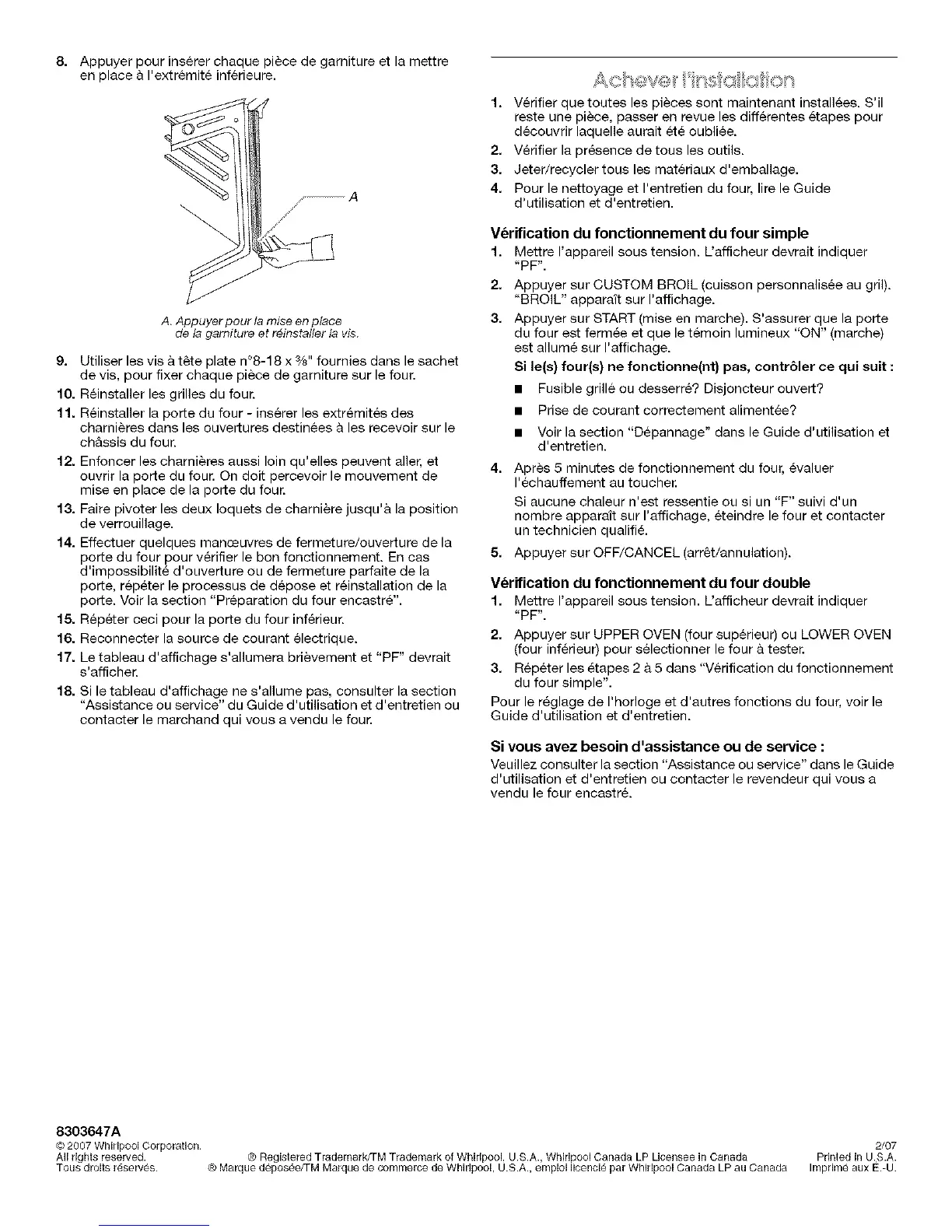 _-¢Marque deposee/TM Marque de commerce de Whirlpool, U.S.A., emploi Iicenci_ par Whirlpool Canada LP au Canada Imprime aux E.-U.