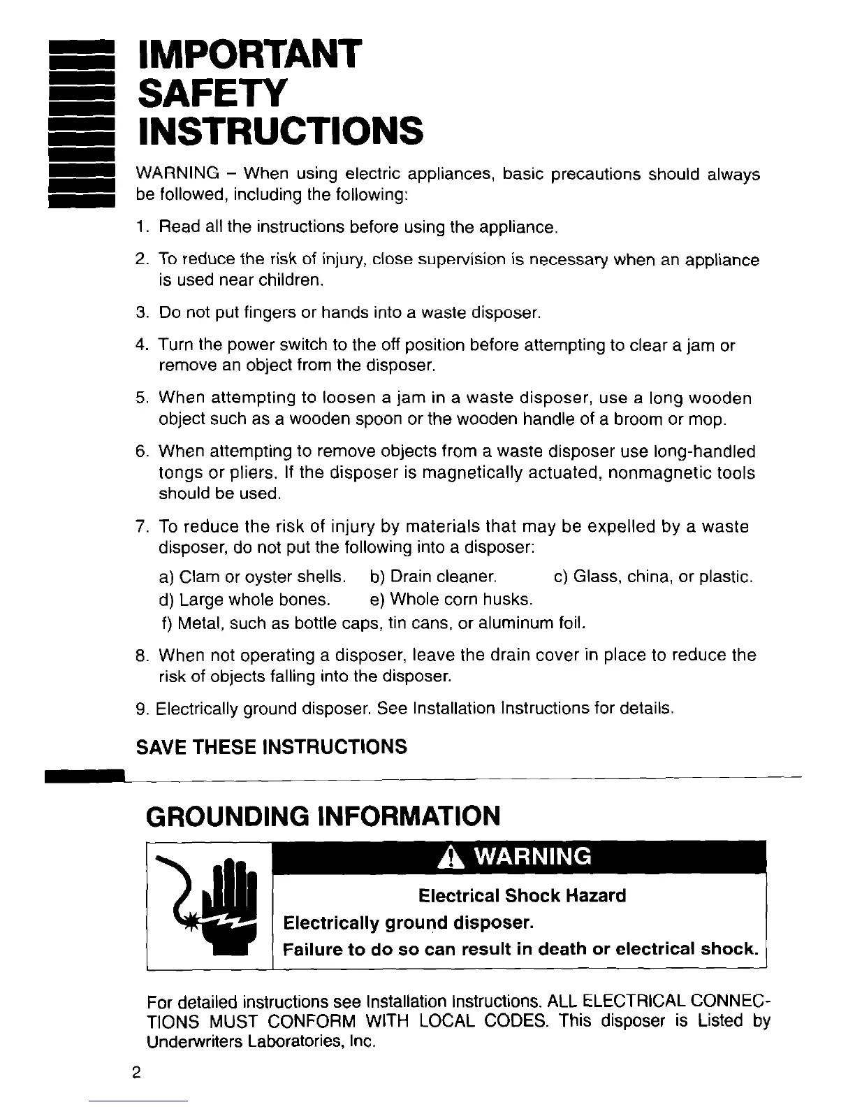 TIONS MUST CONFORM WITH LOCAL CODES. This disposer is Listed by