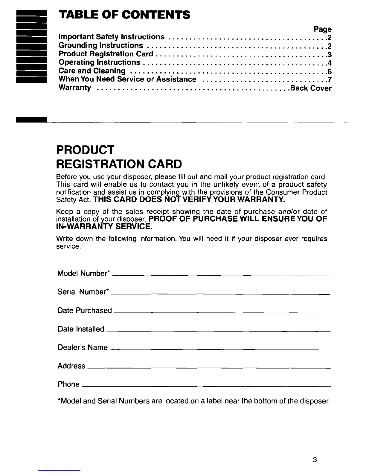 Before you use your disposer, please fill out and mail your product registration card.