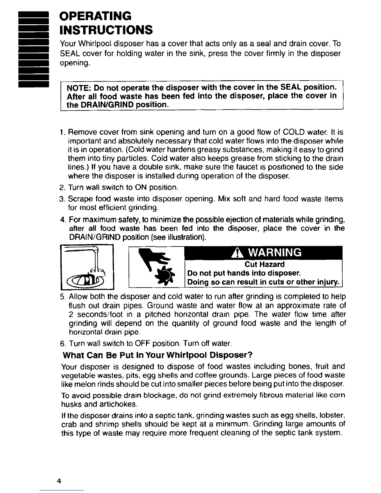 If the disposer drains into a septic tank, grinding wastes such as egg shells, lobster,