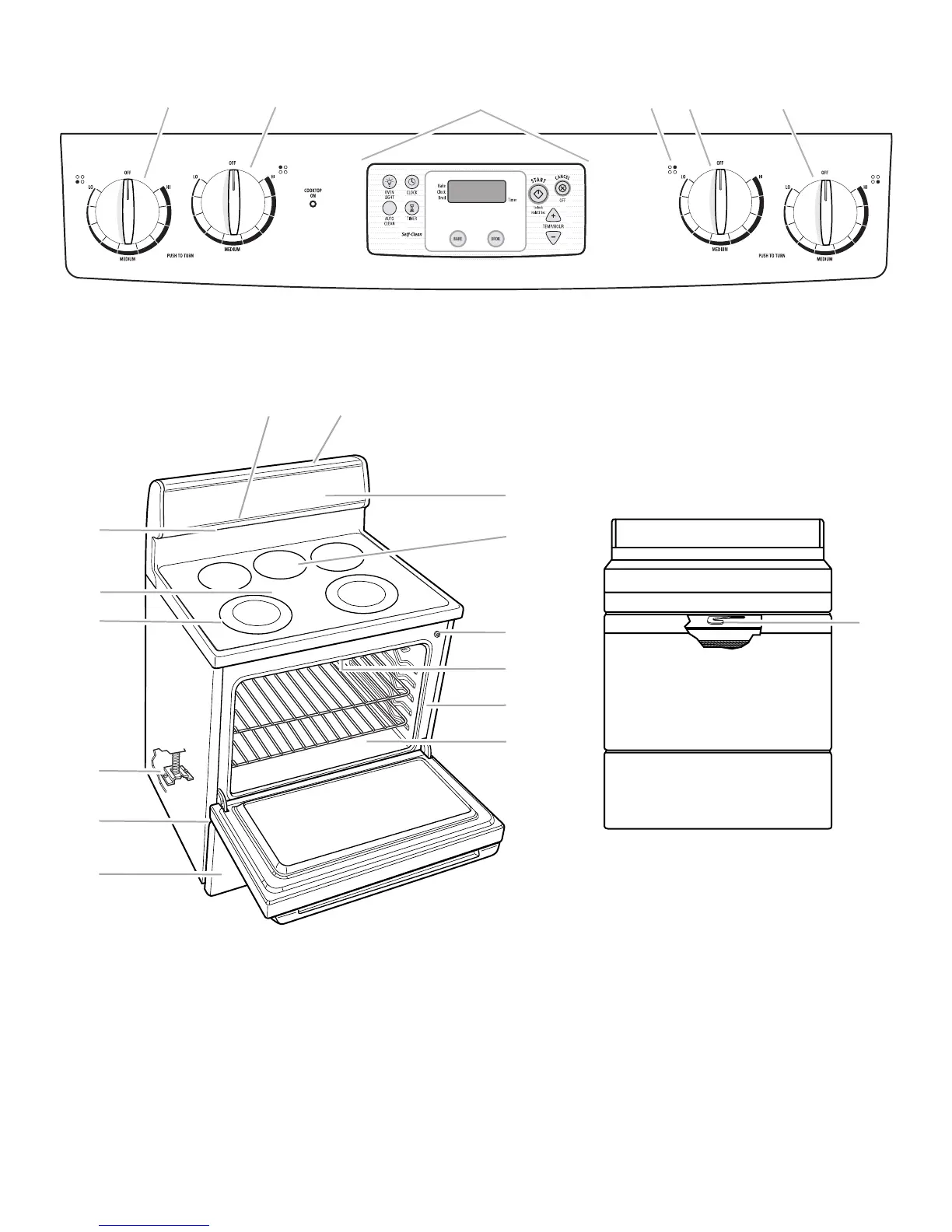 H. Interrupteur de lampe du four