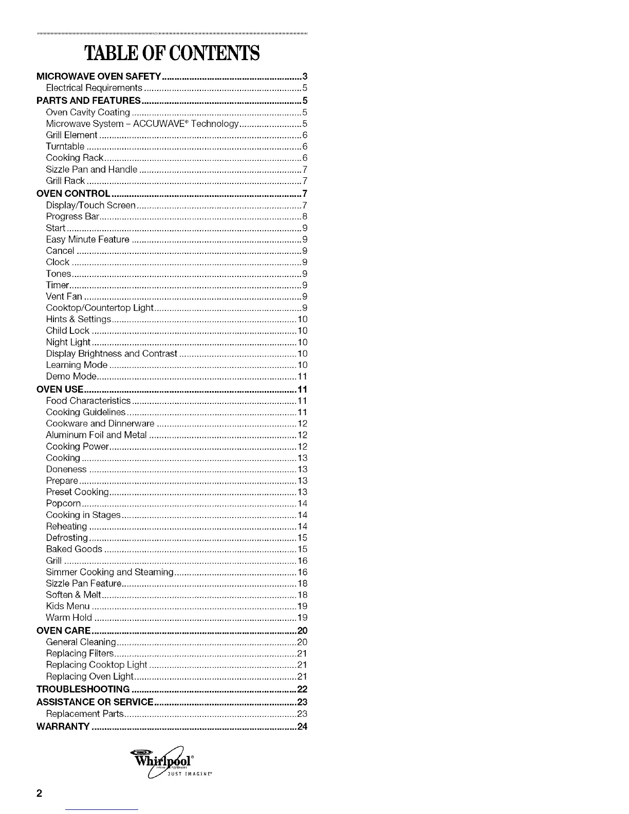 OVEN CARE .................................................................................. 20