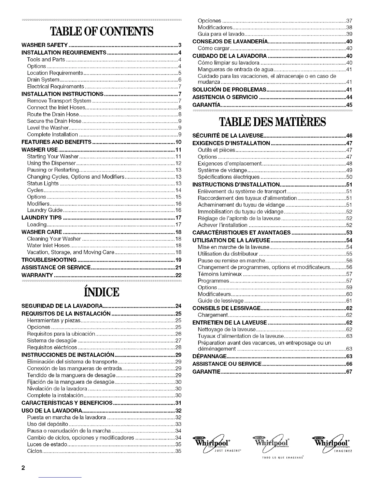 WASHER SAFETY .......................................................................... 3